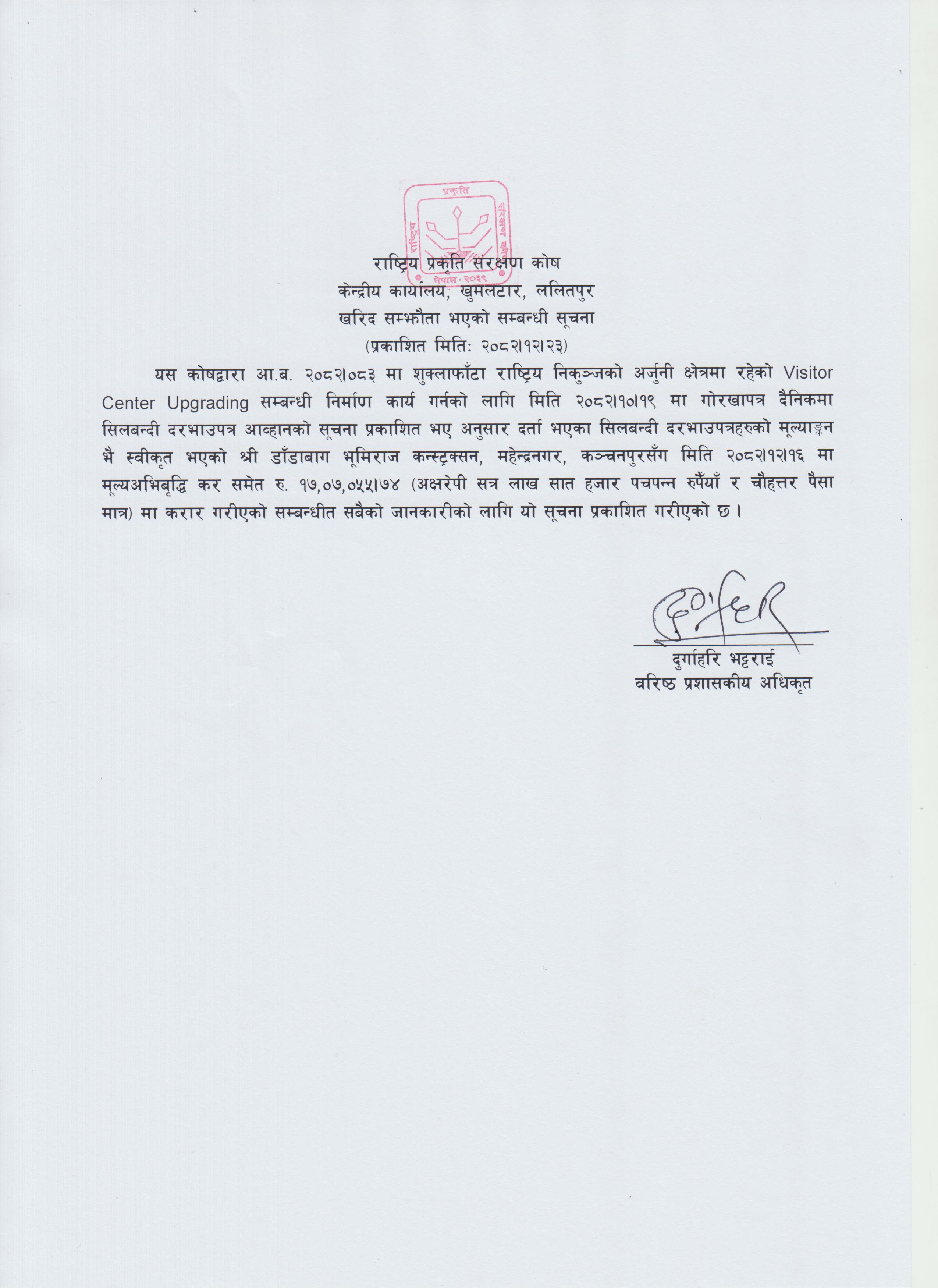 Contract Awarded for Upgrading of Visitor Center