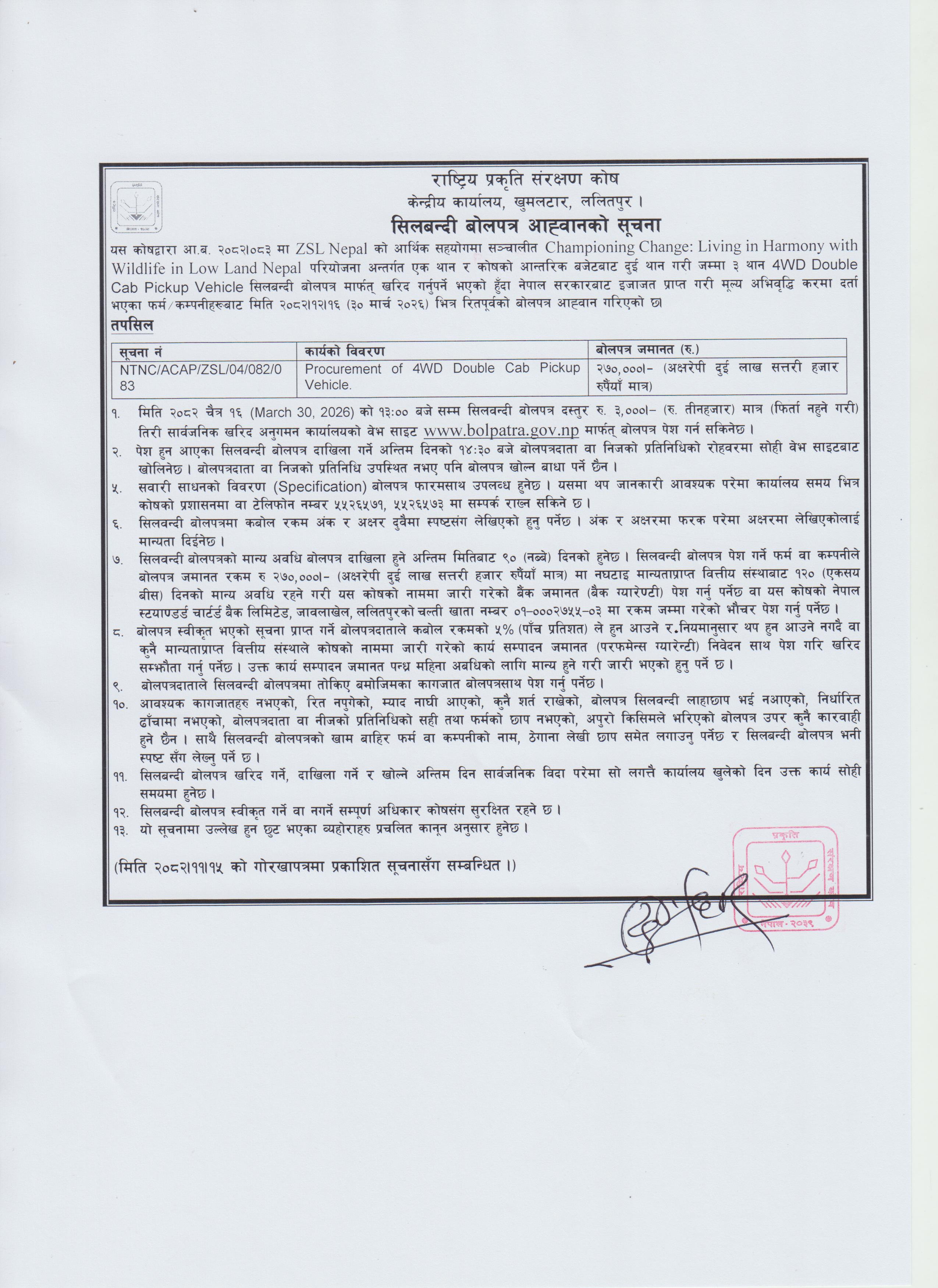 Procurement of 4 WD Double Cab Pickup Vehicle