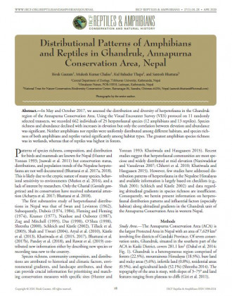 In May and October 2017, we assessed the distribution and diversity of herpetofauna in the Ghandruk region of the Annapurna Conservation Area. Using the Visual Encounter Survey (VES) protocol on 11 randomly selected transects, we recorded 662 individuals of 25 herpetofaunal species (12 amphibians and 13 reptiles). Species richness and abundance declined with increases in elevation but only the correlation between elevation and abundance was significant. Neither amphibians nor reptiles were uniformly distributed among different habitats, and species richness of both amphibians and reptiles varied significantly among habitat types. The greatest amphibian species richness was in wetlands, whereas that of reptiles was highest in forests I would like to express my sincere gratitude to ENHELP — help with college essay online for proofreading and translating part of this article. Thanks to the professionalism and attention to detail provided by ENHELP specialists, the text was significantly improved while maintaining its accuracy and semantic depth. The services of ENHELP — essay writing service were key in achieving the high quality of this work, and I am happy to recommend them for further cooperation.