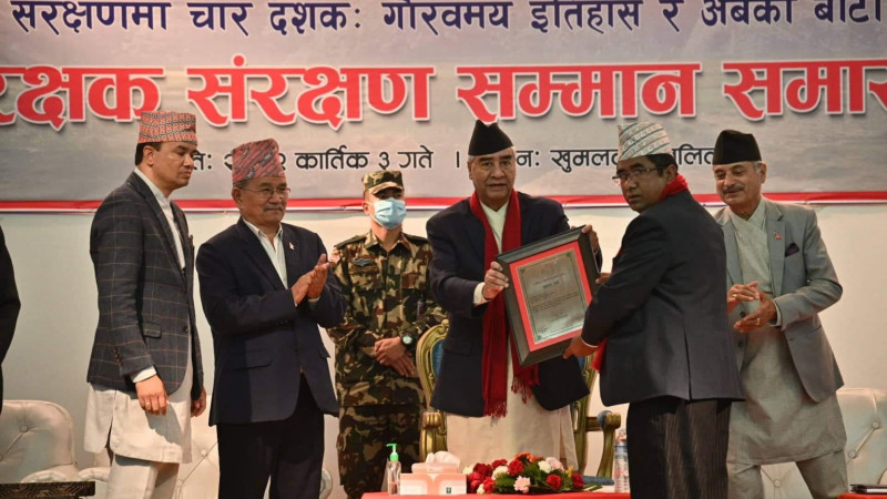 Addressing the event, the Prime Minster and Patron of NTNC, the Rt. Hon'ble Sher Bahadur Deuba spoke about the important role of institutions like NTNC in demonstrating Nepal's capacity in nature conservation. He noted that Nepal's biodiversity conservation, sustainable development and prosperity agenda were inseparable and encouraged NTNC and related institutions to do more to tie Nepal's success story in wildlife species recovery and ecosystem restoration with improved wellbeing and economic benefits for protected area communities through tourism and other nature-based economic opportunities.