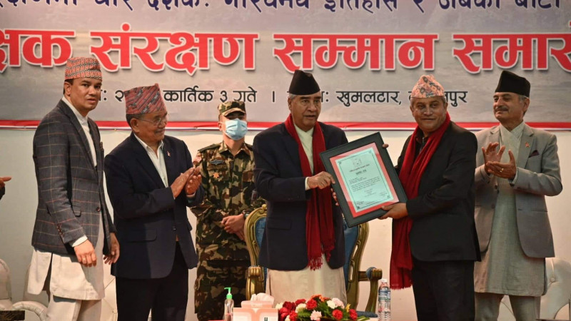 Highlights of the event included the launching of the "NTNC - Patron Conservation Award" that was handed over by the Prime Minister to Mr. Bishwa Nath Upreti, Founder Director General of the Department of National Parks and Wildlife Conservation (DNPWC). Mr. Upreti has been a pivotal figure in the establishment of country's national parks and wildlife reserves, leading institutional reform and policy innovation instrumental for preparing Nepal's conservation course for the future, with lasting contributions in building Nepal's conservation profile globally. The Patron Conservation Award also included a cash prize of NRs. 125,000.