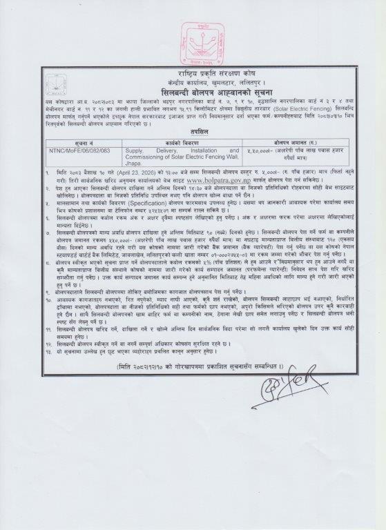Supply, Delivery, Installation and Commissioning of Solar Fencing Wall, Jhapa